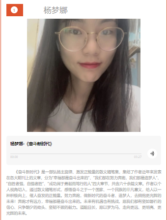 陈方琪同学分享的《红岩》讲述前辈先烈用钢铁般的意志面对困难不退缩,是一腔热血、更是一种信仰。何艺凡同学分享的《扶贫志》,从十八洞村着笔,以列传的形式讲述大湘西扶贫人充满传奇的脱贫攻坚故事,传递了脱贫攻坚的精神能量。何明辉同学分享的《把一切献给党》讲解了每位在斗争中浴血奋战的共产党员的心声。杨梦娜同学分享的《奋斗新时代》感悟奋斗之于一个国家、一个民族的非凡意义,给人以积极向上、催人奋发的正能量。