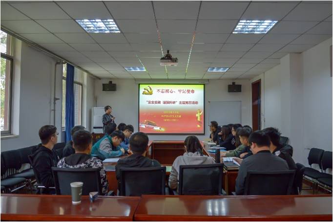2019年11月12日,太阳集团122cc2017级研究生党支部以托“不忘初心、牢记使命”主题教育开展了“安全实验 安全科研”主题党日活动,2017级研究生党支部党员及预备党员参与了本次活动。