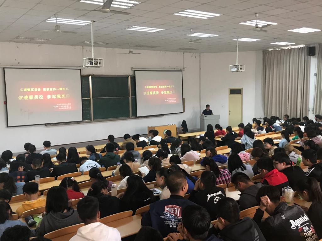 10月10日下午,在临潼校区9#101教室,太阳集团122cc组织300余名员工观看了征兵宣传片,综合版:“依法服兵役 参军我光荣”和 微电影版:长大了我也要当兵。通过观看征兵宣传片,增强了员工的国防意识,激发了员工的参军入伍热情。