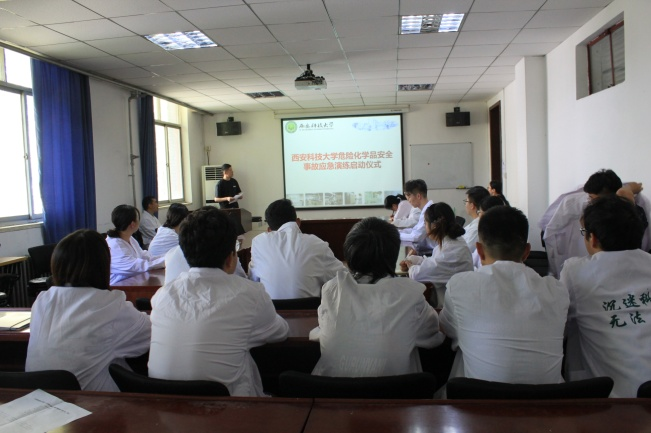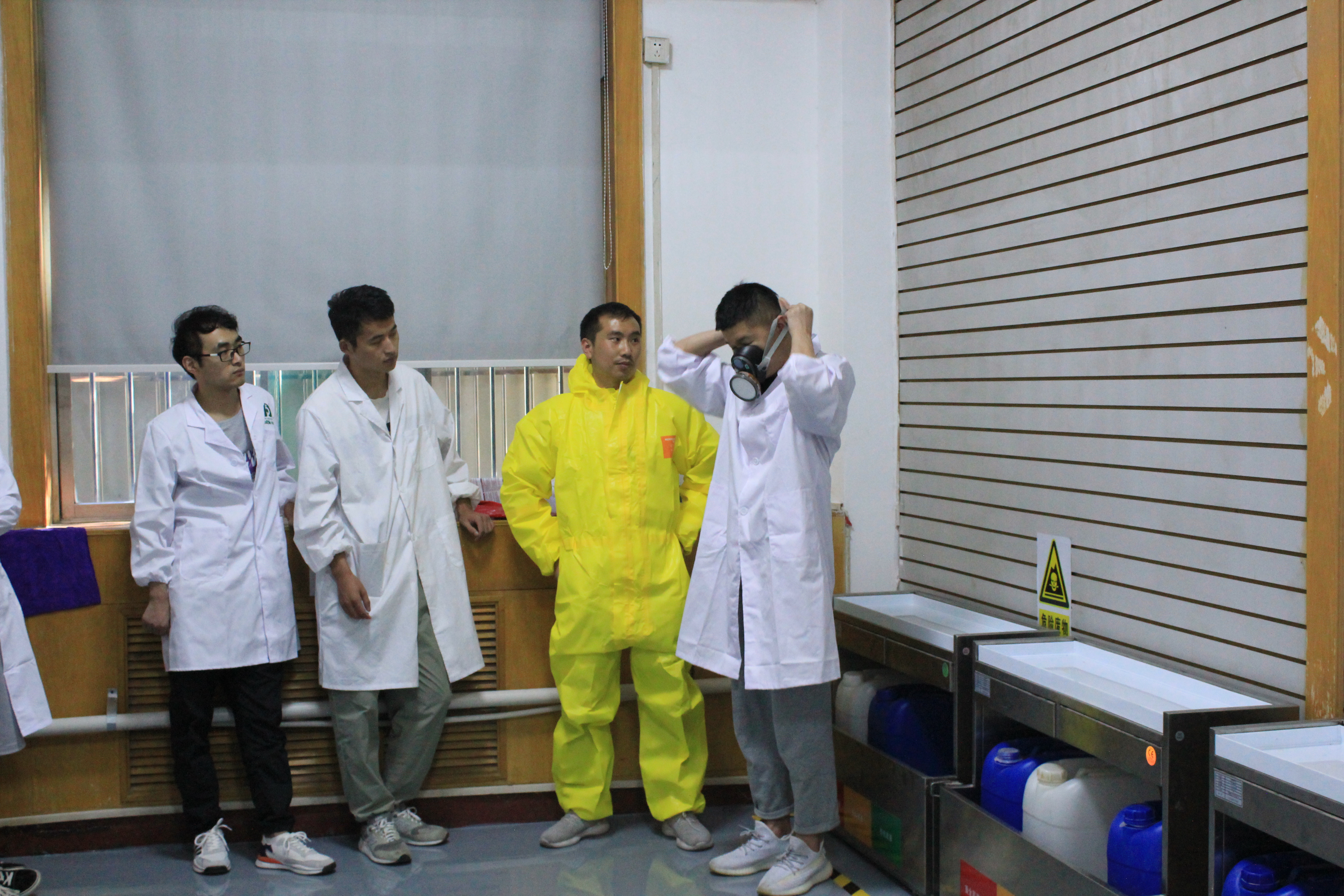 首先,进行应急常识及安全器材的学习。组织研究生就应急常识及安全器材的使用进行了讲解示范,带领学习了危险废物防治措施及突发事故应急预案,现场演示了防护用品的穿戴方式及使用方法。
