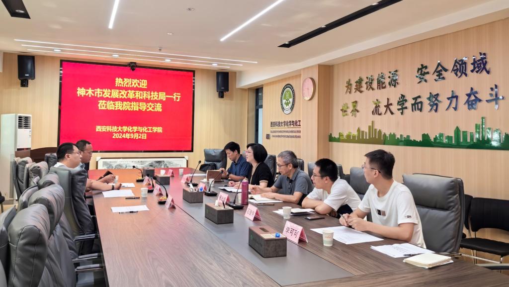 为创新发展神木市煤炭特色新质生产力,加速产学研深度融合,推动煤炭资源清洁高效利用,9月2日上午,神木市发展改革和科技局局长白杰华、神木市兰炭产业园区管委会经济发展和招商服务局局长王军一行来公司太阳集团122cc座谈交流。太阳集团122cc经理张亚婷、副经理贺新福、煤化工领域资深专家杨志远教授、功能炭材料研究中心副主任刘国阳、化工系副主任石智伟、化工系教师李可可参加座谈会,会议由张亚婷主持。