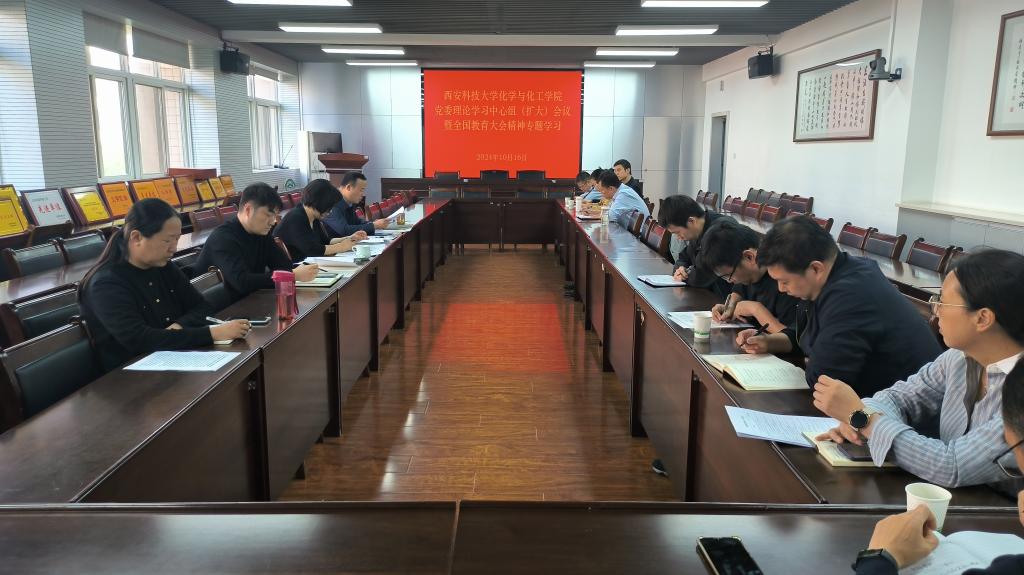 10月16日,化工公司在临潼校区召开委党委理论学习中心组(扩大)会议,专题学习全国教育大会精神。公司党委理论学习中心组成员,纪委委员,教工党支部书记,各系(室)主任,工会主席、经理助理、团委书记,教务办主任,学科秘书参加会议。公司党委书记肖阳主持会议。