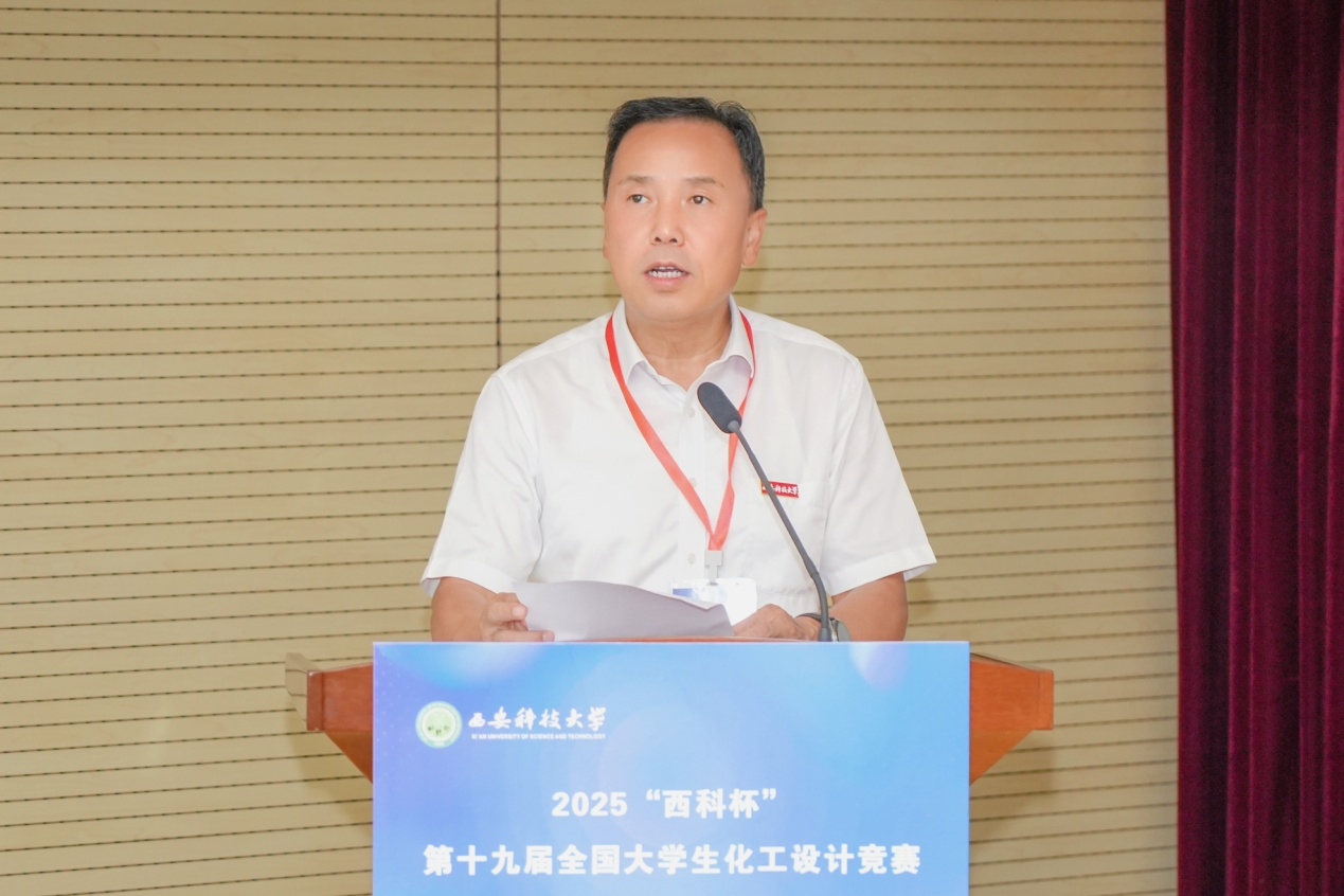 陈春林代表公司致开幕词,他对西北赛区决赛的举办表示热烈祝贺,向莅临指导的各位领导、嘉宾和参加决赛的老师、同学们表示欢迎,并简要介绍了公司办学基本情况和人才培养理念。他表示,举办“西科杯”第十九届全国老员工化工设计竞赛是深入学习贯彻习近平新时代中国特色社会主义思想,贯彻落实党的二十届三中全会精神有力举措,为培养创新型人才、增强当代老员工的创新思维、工程实践能力和团队合作意识提供了有效途径,同时也为公司深化教学改革、加强校企合作、促进学术交流创造了重要契机。衷心希望与会专家能够对公司化工及相关学科的建设与发展给予指导,提出宝贵建议。公司也将以此次竞赛为契机,与各兄弟高校进一步开展化学化工领域的交流与合作,以高水平竞赛驱动化学化工教育领域新质生产力发展。并寄语参赛选手以赛促进、相互学习,多方面培养自身的创新思维,增强工程设计与实践能力。