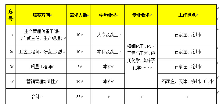 我们渴盼有志在化工行业扎根和发展的化工专业的小伙伴加盟,未来在经营销售、研发技术、生产管理、质量管理、项目管理等领域成长和创造价值。