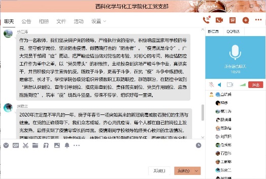 2020年6月29日19时30分,化工支部在线召开了组织生活会,支部组织生活会的主题是“迎党的生日、讲战疫故事、悟初心使命”,在这次组织生活会中,各个党员同志分享了疫情期间自己所见、所闻、所感的人和事,有很多优秀共产党员的言行感染着他们,他们将其分享给支部同志,讲述他们的感人事迹。在我们身边也有这样的故事,张亚婷同志叙述在开学后,各位教师,特别是教师党员互相交流在线教学心得,克服各种困难,修改完善授课PPT,积极投身教学工作中,保证教学质量和教学效果。毕业生返校后,化工党支部教师党员能够积极联系员工,做好员工的心理疏导,安排好毕业论文工作,保证了公司教学工作的顺利进行。章结兵同志讲述了开学后,化工系很多教工自觉行动起来,废寝忘食学习在线教学新技术,互相交流学习心得,他们秉承的目标就一个,做到线上教学不打折扣,通过努力,圆满完成这学期的教学任务,在毕业生不能到校的前提下,化工系教工尽量利用一切现代化手段与员工建立联系,及时跟踪毕业设计的进度,保证了毕业论文的质量,同时在疫情较严重的阶段,很多同志不怕疫情风险,面对面无私指导、帮助青年教工修改基金本子,提质基金撰写质量,这些身边鲜活的实例都是大家学习的榜样,是不忘初心、勇担使命的代表。在这次组织生活会中,通过这些感人事迹的分享,化工系党员同志再次感悟了初心使命,净化了心灵,提升了党员同志的理想信念,在今后的工作中,大家纷纷表态,像陈治平同志所感一样,作为一名工作在教师岗位上的党员,更应该不忘初心、牢记使命,努力做一名员工喜爱的好老师,传授知识的同时,融入思想道德教育,使员工学好知识的同时,树立正确的人生观、价值观和爱国观念。