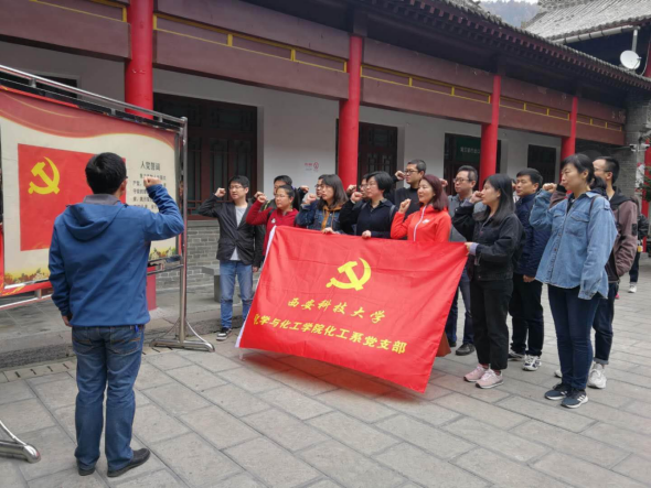 参观结束前,化工系党支部组织党员同志们在现场重温了入党誓词,大家热血沸腾,深刻体会到理想信念的重要性,体会到从旧中国到新中国建立的不易,体会到共产党人为建立民主的新中国所付出的巨大努力,更加认识到只有共产党才能救中国,唯有坚持中国共产党的领导、坚持中国特色社会主义道路,才能发展中国的硬道理。