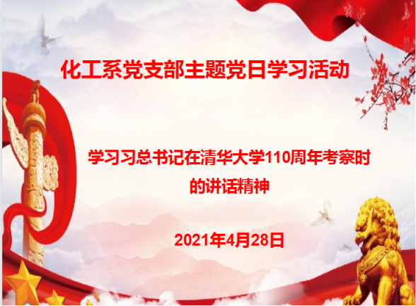 为更进一步贯彻党的教育方针和国家的公司产品指导思想,2021年4月28日19:30,化工系党支部召开在线支部大会,集体学习、讨论习近平总书记在清华大学110周年考察时的讲话,本次会议由支部书记章结兵同志主持。