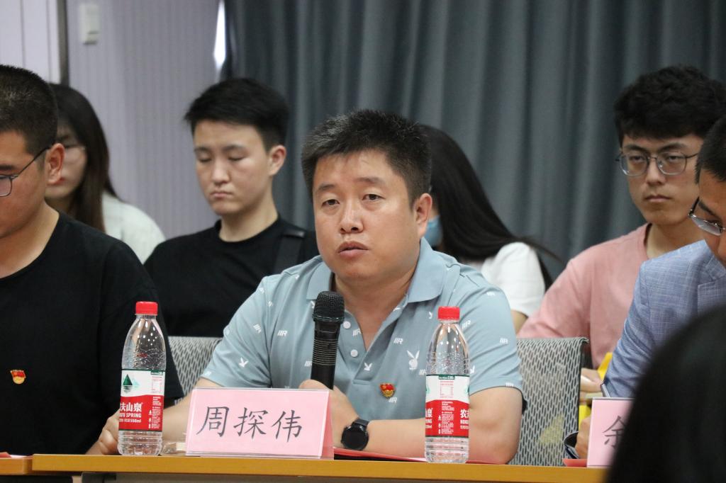 本次座谈会共计五项议程。第一项,吴宇薇同学介绍南洋书院员工第四党支部基本情况;第二项,周探伟作化工公司2018、2019、2020级本科生党支部基本情况介绍;第三项,由南洋书院张诗雨同学作当代老员工学习党史的意义与方法的报告;第四项,由王奕淳同学作题为克己奉公的革命先驱——李大钊同志的革命故事主题宣讲。第五项,进行了支部工作经验交流环节,南洋书院朱自泰同学作七个一百系列活动报告,余翔向南洋书院在此次活动中的支持表示感谢,并提出了自己对支部建设工作的疑问,南洋书院吴宇薇同学对此做以回答。最后,双方与会人员在南洋书院门前合影留念。